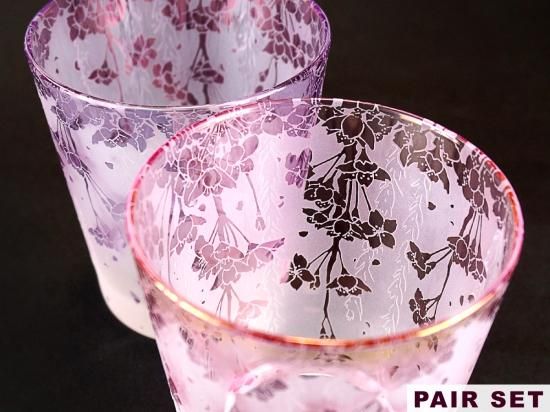 枝垂れ桜と柳のグラス[ペアセット/木箱付]