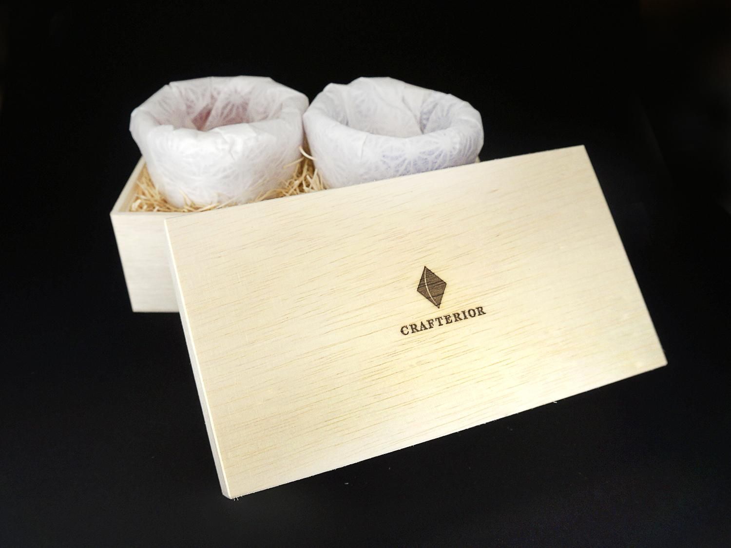 こちらのページは、グラス複数個をひとつの木箱に梱包するところまで含めた販売ページになります。個別にグラスと木箱を注文した場合よりもお安くなっております。