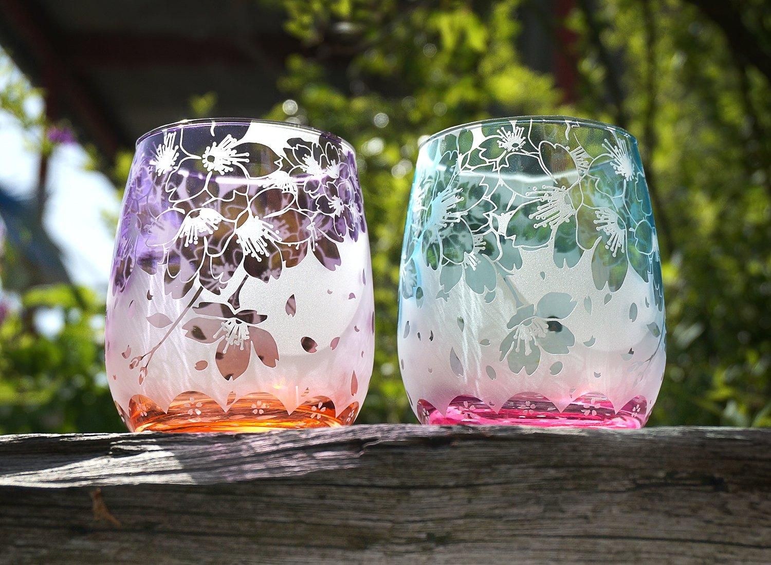 グラスに飲み物を注げば桜も花びらも揺らぎ非常に風流です。焼酎や日本酒、ワインなど様々な酒類に適した大きさです。