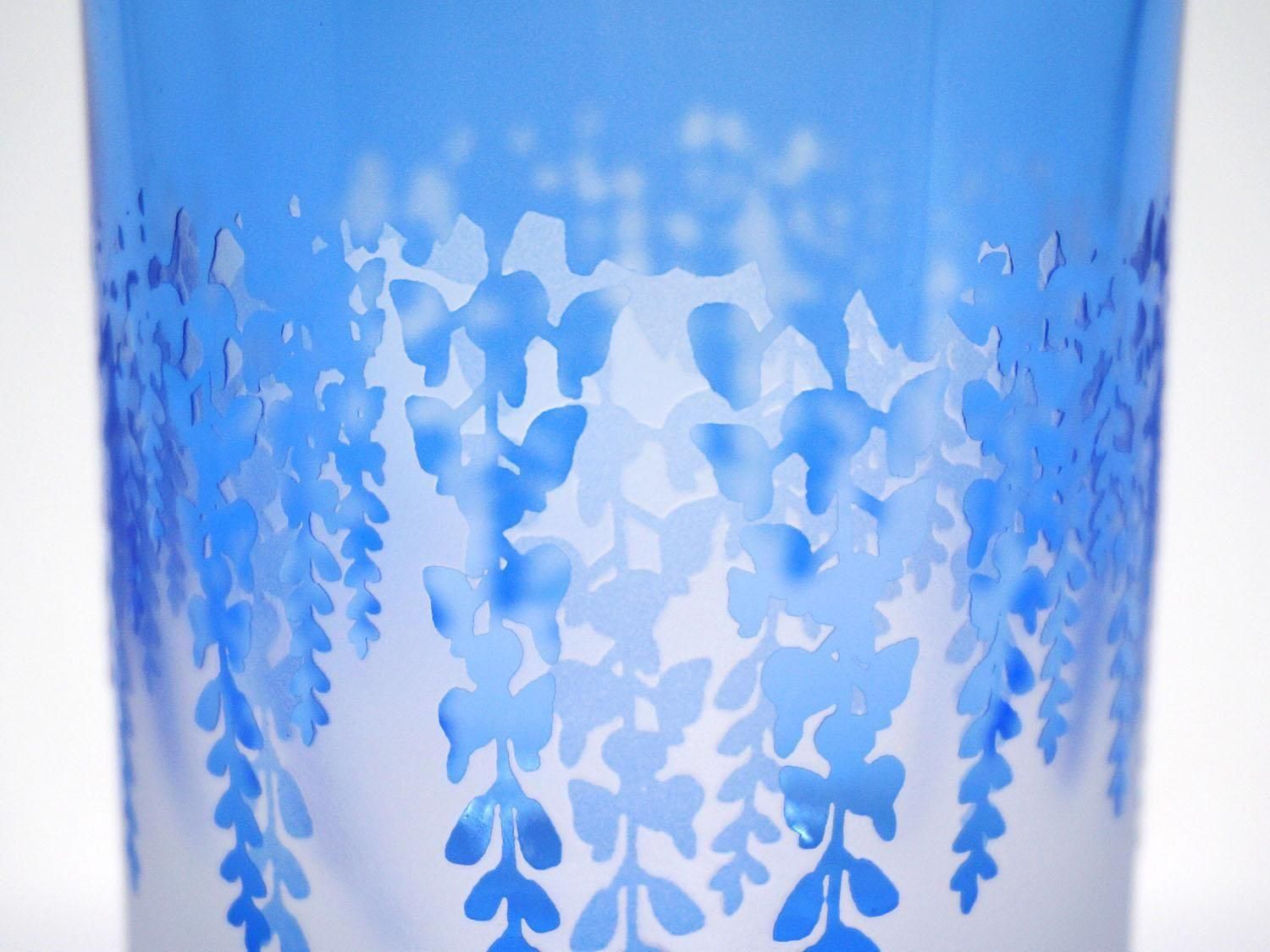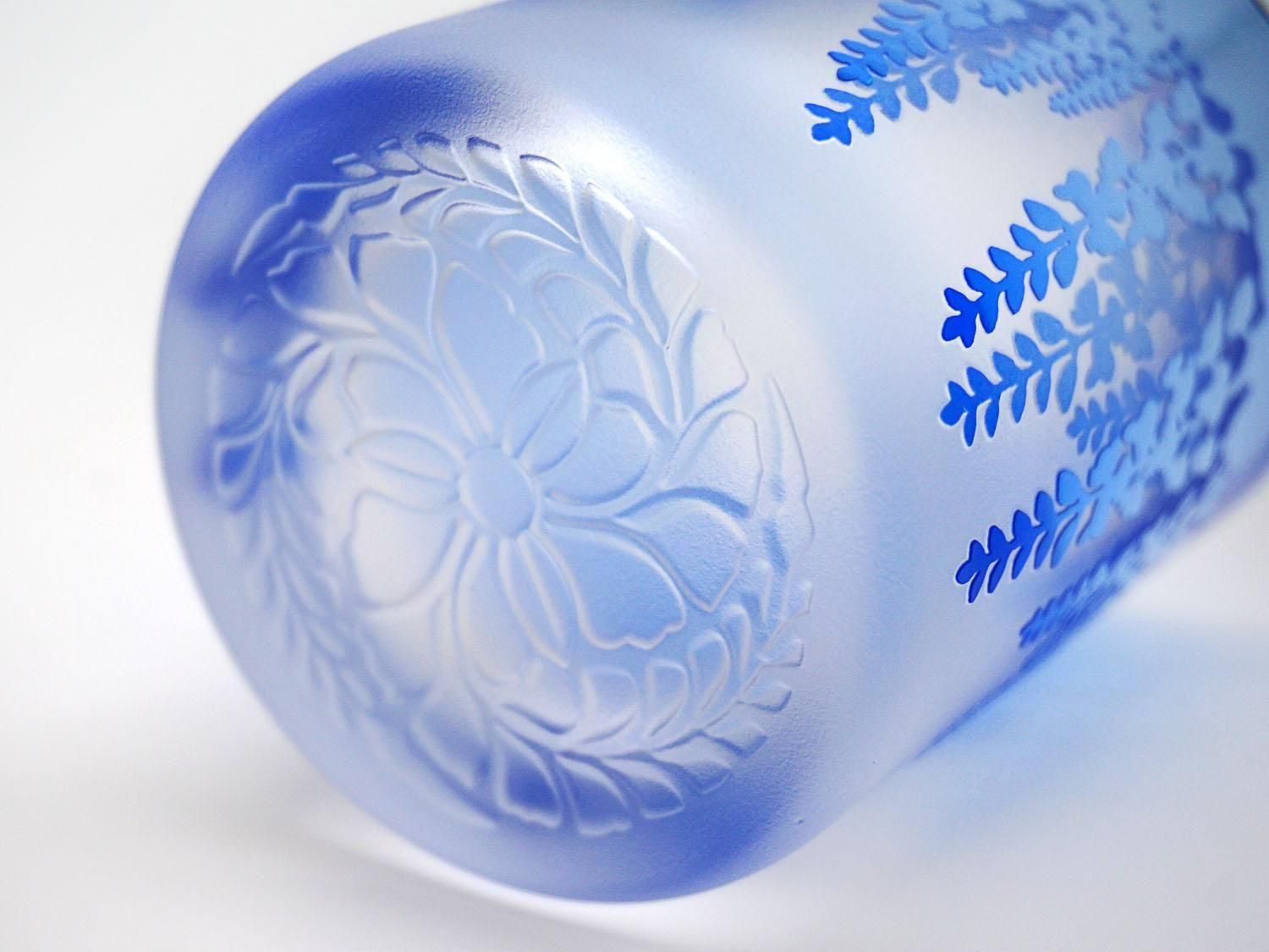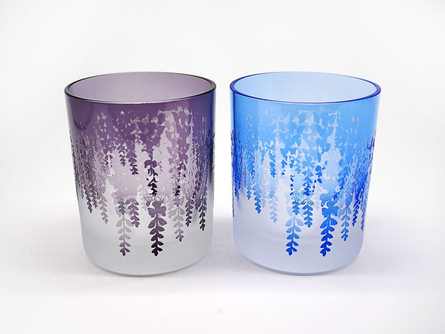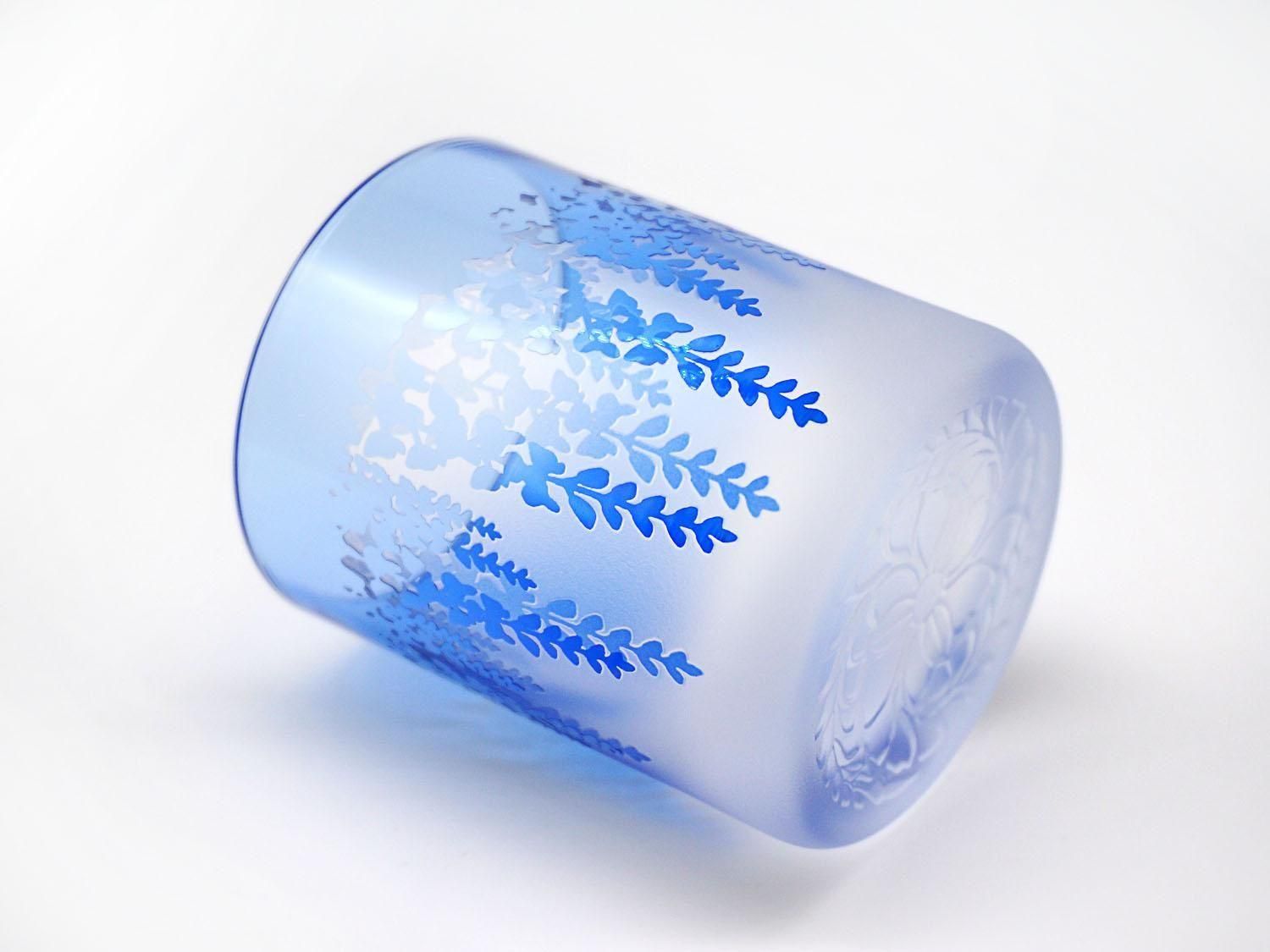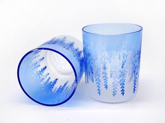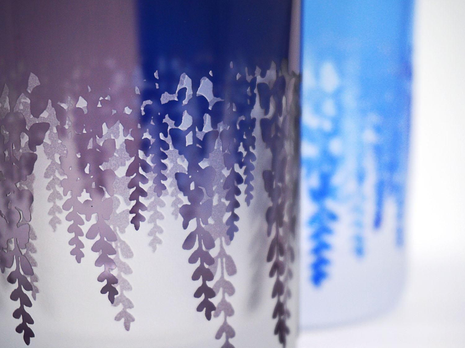 切子などにも使用される国産の被せガラスに、藤の花を彫刻しました。