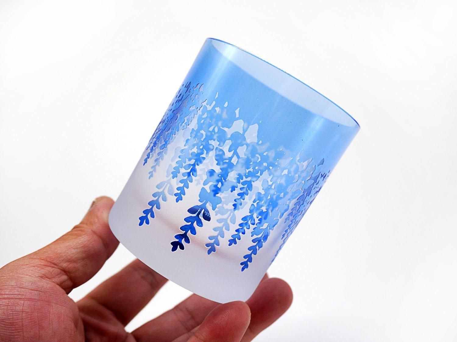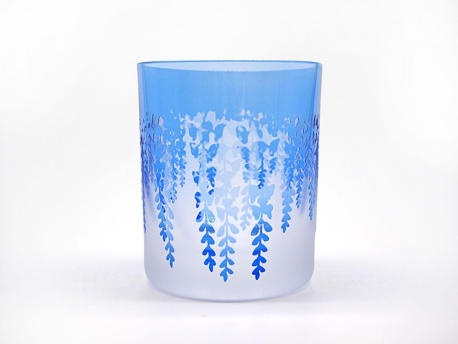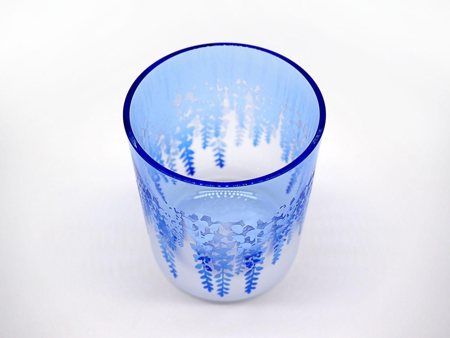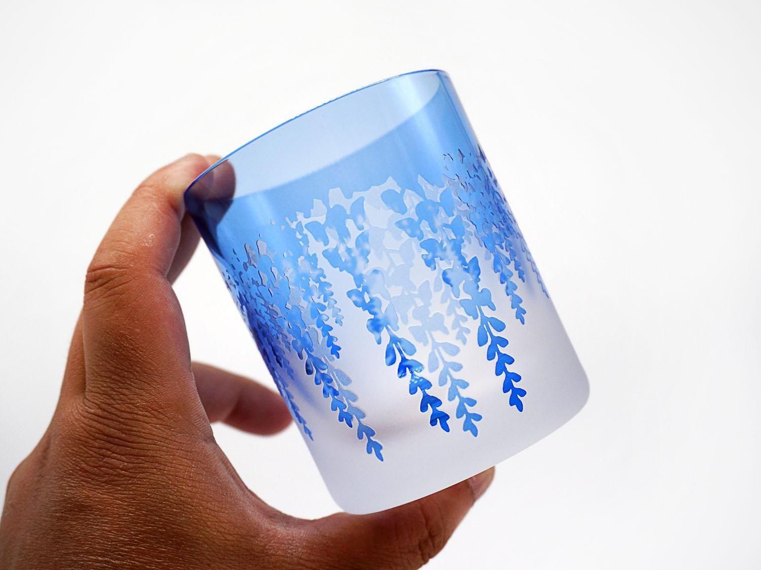 飲み物を注ぐと、内側の藤が揺らいでとても風流です。水・焼酎・日本酒・ワインなどをこのグラスでいただけば、いつもよりちょっとだけ美味しくなるかもしれません。