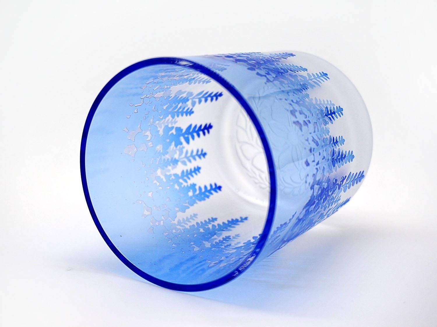 このうち色のついた層のみを削り取ることによって、様々な模様やグラデーションを生み出します。そのため、色の変化に合わせた段差も生じ、それがグラスに独特な手触りを与えます。